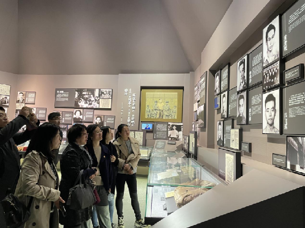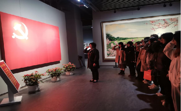 在龙华烈士纪念馆内,面对鲜红的党旗,在学院党总支书记凌慧义领誓下,新发展党员进行入党宣誓,老党员重温入党誓词。