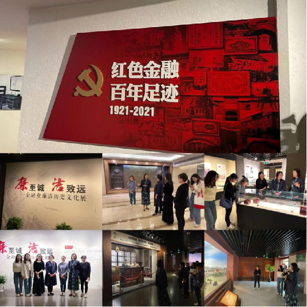 王颖介绍,由中国工商银行创办的上海市银行博物馆是上海国际金融中心建设中一张独特文化名片,她带领金融科技学院老师们感受近百年来的金融沉浮。她以历史线为逻辑,从“汇通天下 西风东渐”,“岁月流金 曲折前行”,再到“励精图治 海纳百川”,多个主题、多种形式形象展现了金融行业在中国的萌芽、发展、变迁。在讲解员带领下,老师们还参观了《红色金融百年足迹(1921-2021)》、《廉至诚 洁致远——金融业廉洁历史文化展》等,大量珍贵的纸币、票据、印章等展品,从不同的视角传递着金融文化,为老师们带来沉浸式的学习氛围。