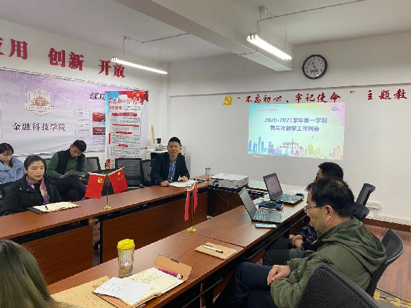 12月2日,金融科技学院于学院会议室召开第三次教学工作例会,会议由教学副院长杨超主持,院班子成员及全体教职员工出席。