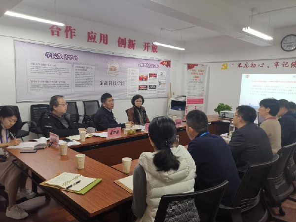 殷林森以“潜心治院固基石 合作办学担使命”为题做了主题汇报,校办崔亦田主任、徐丽娟以及金融科技学院其他班子成员参加调研。