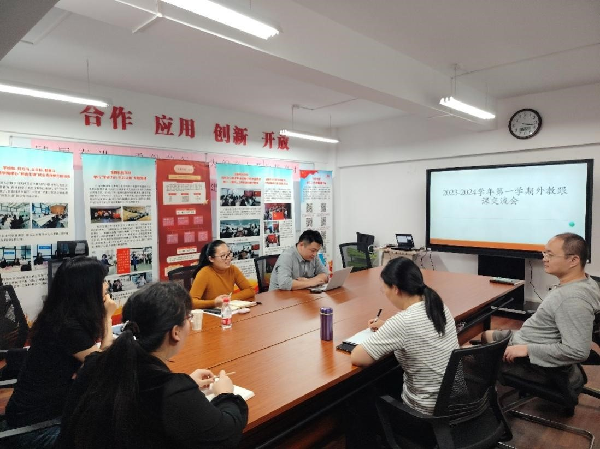 为进一步提升金融工程(中美合作)专业本科人才培养质量,金融科技学院于2023年10月26日开展了“2023-2024学年第一学期外教跟课交流会”,会议由金融工程(中美合作)系专业主任王江盼主持,学院副院长吕大永、各教研室的外教课程跟课老师参加本次研讨会。