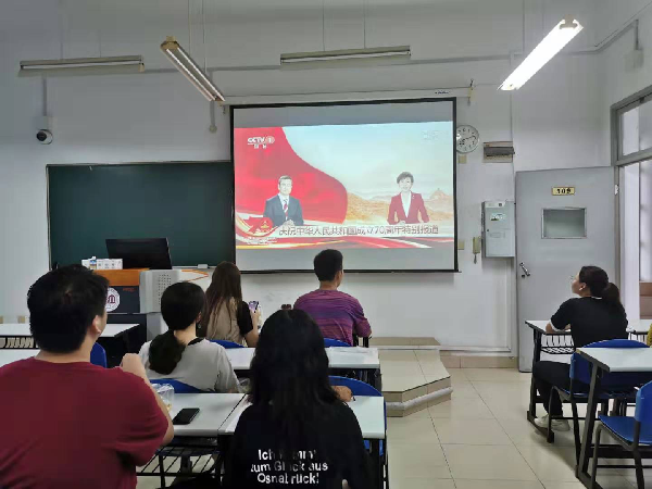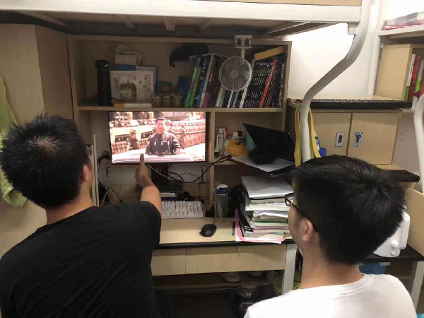 十一假期期间许多同学没有回家,而是选择了留校,学院也得知了同学们期盼观看阅兵式的心愿,将留校的同学组织在一起观看阅兵式。金融科技学院1班的程小涵同学虽然没有亲临阅兵现场,但她在观看阅兵式时却也仍心潮澎湃,她说道:“当我看到分列式军人们的表演,那种自带BGM的气场,背后是多少日夜的刻苦训练,多少汗水与泪水的浇灌,才换来这样一场盛宴。我想对那些革命烈士说,这盛世如你所愿。”