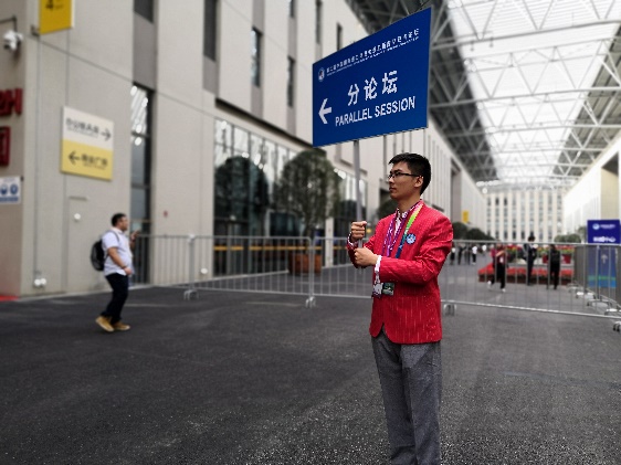 身为进博会嘉宾午餐引导组,负责开幕式结束后嘉宾们的午餐指引以及下午的分论坛指引的志愿者,郜真这样说道,“我们位于核心场馆内,属于非常重要的岗位,我们同样为此感到骄傲。但真正站在岗位上,我才意识到,身上不仅仅肩负着为嘉宾指引路线的责任,还应做好面对好一切应急情况的准备。在国内外嘉宾面前,我们代表的是学校,上海,乃至中国的形象,我们不仅仅是一名普通的路线指引志愿者,而应该通晓场馆内的会议情况、交通情况、设施布施等等。