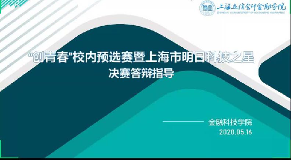为更好帮助我院学生科创团队在2020“创青春”大学生创业计划竞赛校内预选赛和第十八届上海市百万青少年争创“明日科技之星”评选决赛中取得良好成绩,整体提升我院学生的科创能力和参赛水平,2020年5月16日下午,金科团学科创部顺利举办了“创青春”校内预选赛暨上海市“明日科技之星”决赛答辩指导会,邀请金融科技学院副院长杨超,慧科大数据资深讲师、苏沪校区教学负责人王超老师担任指导专家;项目团队全体成员,团学科创部、菁才班等同学共同参加。