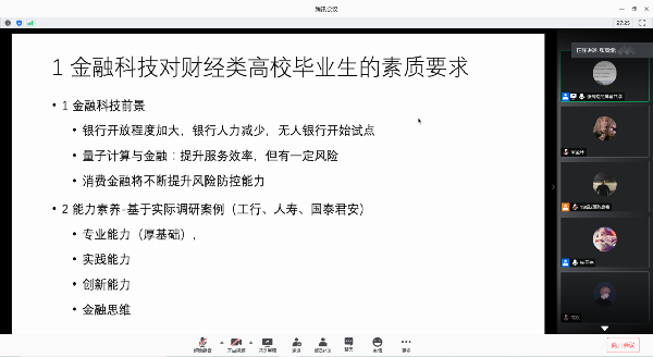 7月8日下午,上海立信会计金融学院信息管理学院教师张高煜开展题为《财经类高校创新创业教育研究与实践案例》的主题讲座,与同学们探讨金融行业对财经类高校毕业生的素质要求。建议同学们从专业能力、实践能力、创新能力、金融思维等方面入手,积极参加科研实践活动,提升自己的能力素养。
