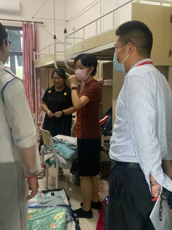 在所有新生同学返校后,学院领导与新生辅导员一道,走访了新生寝室。在强调了同学们的寝室安全问题的同时,老师们也着重关心了新生在住宿及生活方面的需求和意见,再次对新生们来到学院表示欢迎。