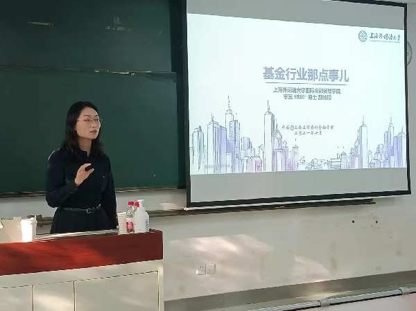 为帮助广大学生了解基金行业,拓宽就业思路,明确奋斗目标,金融科技学院于10月28日下午组织20级金融科技、金融工程(中美合作)专业学生在二教展开“基金行业那点事儿”讲座。本次讲座由上海外国语大学国际金融贸易学院的李蕊副教授主讲,金融科技学院殷林森院长主持。