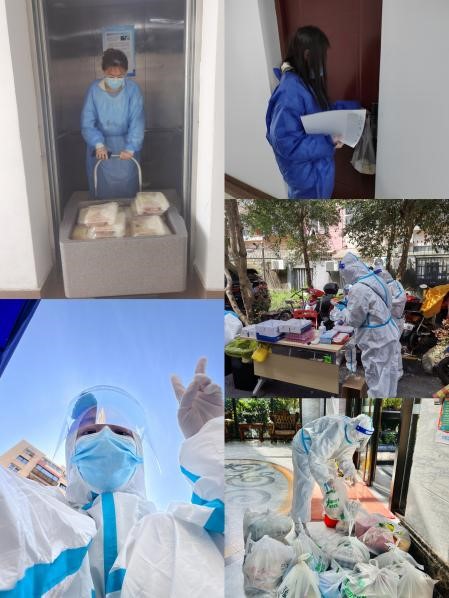 金融科技学院党总支书记褚红素社区封闭初始便第一时间与社区居委取得联系,加入小区志愿者队伍和党员先锋队,积极参与组织小区的全员核酸检测工作,登记居民信息,协助核酸扫码、维持现场秩序等。金融科技学院党总支副书记、院长殷林森与居委干部、小区居民一起参与抗疫工作,为足不出户的小区居民搬运、消杀物资,协助组织居民核酸检测,维护楼内管理秩序等。金融科技学院副院长杨超在居家办公、授课之余,参与了物资发放、抗原分发等多项志愿服务工作。