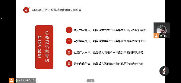 根据“百团知百年”上海大中学生主题宣讲工作安排,近日,金融科技学院团委积极组织了围绕习近平总书记在庆祝中国共产主义青年团成立100周年大会上的重要讲话精神的主题宣讲会,学院团学骨干积极参加。