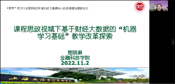 楚晓琳老师指出机器学习技术突飞猛进,“大数据”大量出现无疑使得基于数据驱动的机器学习模型应用范围和功能不断提升。她从课程思政元素挖掘、财经大数据案例开发、混合式教学改革探索等多个方面分享了其教学团队在本课程教学过程中的实践路径。