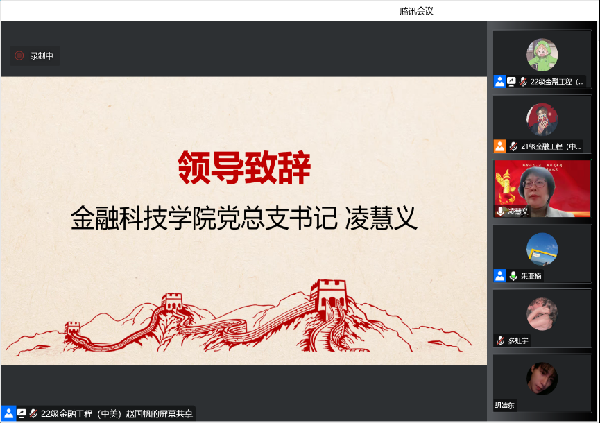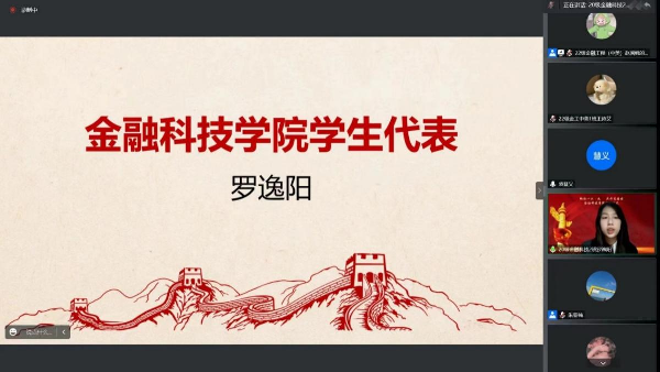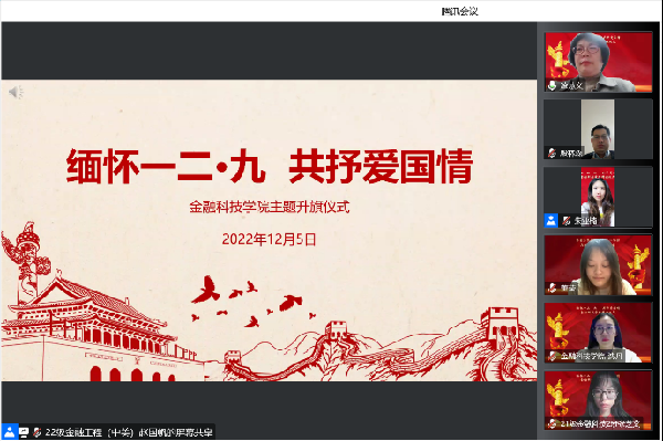 缅怀革命先烈,深植爱国情怀。12月5日,金融科技学院在线上举行了主题升旗仪式。金融科技学院党总支书记凌慧义,党总支副书记、院长殷林森,副院长、副书记(挂职干部)沈丹等与各年级学生在云端共同参与。本次活动由学院团委书记朱亚楠主持。