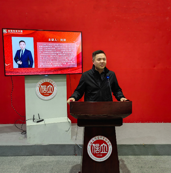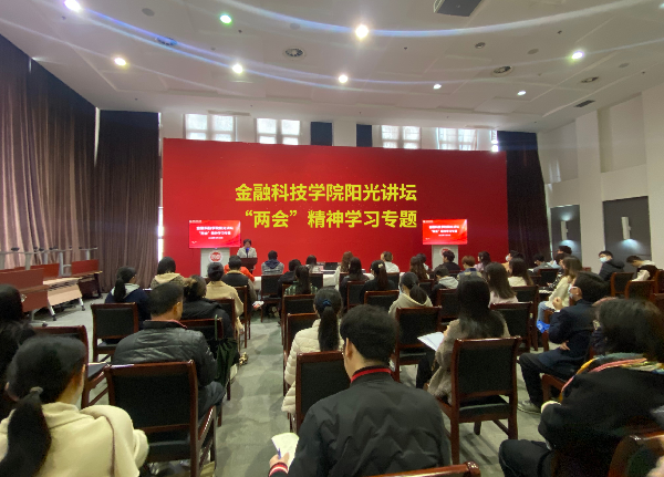 为深入学习贯彻全国两会精神,深刻理解、把握两会精神实质和科学内涵,3月22日下午,金融科技学院在上川路校区学生活动中心301会议室举行阳光讲坛专题讲座暨金融科技学院党总支与立信研究院党总支联组学习活动。上海财经大学马克思主义学院副院长、副教授刘洋担任主讲,金融科技学院师生党员、教职工、学生骨干,立信研究院教师党员共同参加。讲座由金融科技学院党总支书记凌慧义主持。