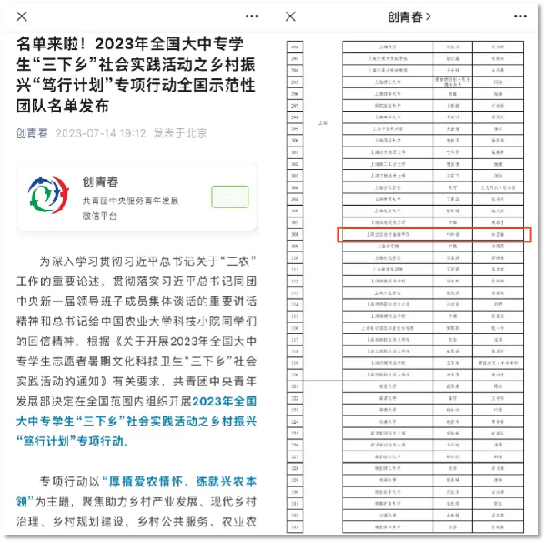 近日,我校“金融科技赋能乡村振兴”社会实践团队成功入选2023年全国大中专学生“三下乡”社会实践活动之乡村振兴“笃行计划”专项行动全国示范性团队。