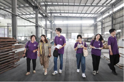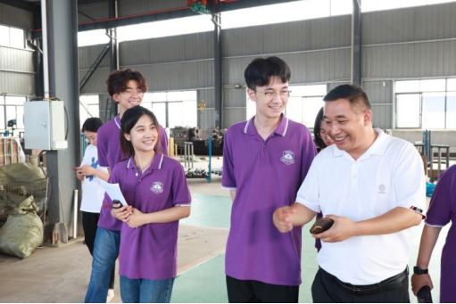 第三站,实践团队来到了安徽省海徽复合材料有限公司,在李总的陪同下,团队成员近距离观察了产品的细节加工,也亲身体验了产品的生产过程。李总表示,公司计划引入金融科技手段,优化供应链管理,降低运营成本,提高资金使用效率,同时也在加大对线上销售渠道的投入,拓展线上销售市场。