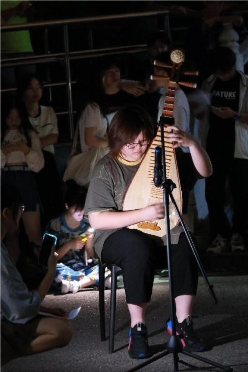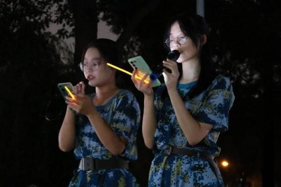 我们用歌声诠释青春的气息,诉说对教官、老师的敬意。真挚又充满感情的歌声赢得了同学们的阵阵掌声。《七里香》、《see you again》等动情的歌声悠扬四方,琵琶独奏《十面埋伏》、《送我一支玫瑰花》以及原创吉他弹唱《启程》等节目更是将整场晚会推向高潮,随着夜幕缓缓落下,晚会也划上了圆满的句号。无论是歌声还是舞蹈,同学们都用自己的方式尽显青春的光芒、描绘大学精彩,给予同学们对于未来生活的憧憬、敢于追梦的勇气和信心。