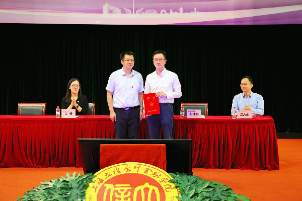 殷林森为徐凯颁发金融科技学院客座教授聘书。
