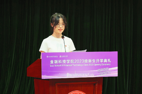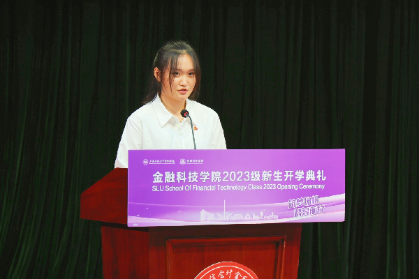 来自23级金融科技2班的周昕瑶作为新生代表发言,她倡议作为金科新生,要以创新造就梦想,为青春注入活力,去拥抱机遇,迎接挑战,以坚韧不拔的意志乘风破浪,以心系天下的情怀让青春远航。