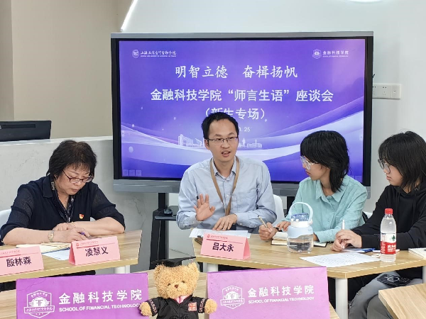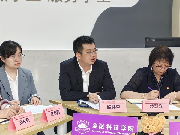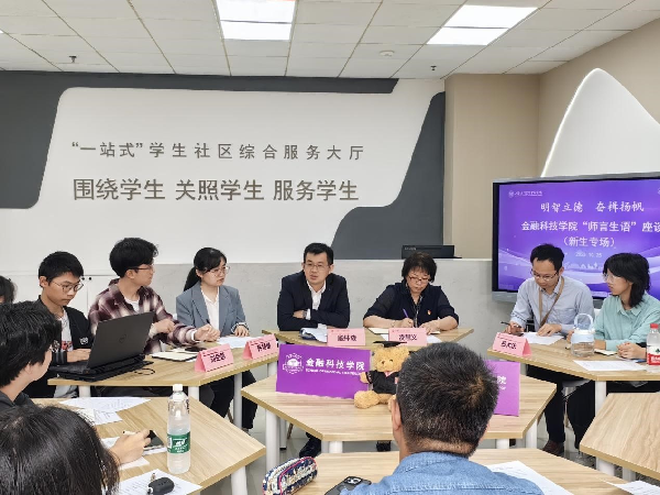 为落实高校“一站式”学生社区综合管理模式建设工作要求,强化党建引领,筑牢“三全育人”新阵地,引导新生以更好的状态融入大学生活,10月25日中午,金融科技学院在上川路校区“一站式”学生社区综合服务大厅举办“师言生语”新生专场师生座谈会。金融科技学院党总支书记凌慧义,党总支副书记、院长殷林森,副院长吕大永,辅导员刘岳堃,青年教师、班导师韩慧媛及2023级新生代表参加。