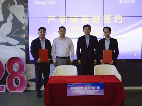 在温景春及政府、企业代表见证下,金融科技学院副院长吕大永代表学院与上海市崇明区竖新镇人民政府、国泰君安投资管理股份有限公司、深兰人工智能科技(上海)股份有限公司、上海精匠信息科技有限公司等四家单位签订产学研合作框架协议。上海市崇明区竖新镇人民政府党委副书记、镇长康乾,国泰君安投资管理股份有限公司副总裁、国泰君安财务顾问有限公司董事长鲁洪代表合作单位发言。康乾以崇明竖新镇的发展定位为基点,从政府视角阐述产学研合作的着力点,并表示会在社会实践、职业素养等方面加强与学院合作,为大学生成长提供广阔舞台。鲁洪以第四次产业革命为切入点,结合近期召开的中央金融工作会议阐述金融科技学院的可为、能为空间,并表示将与学院携手推动产学研合作的探索与创新,整合人才链、产业链、创新链与资金链,形成教学、科研、产业一体化可持续性合作模式。