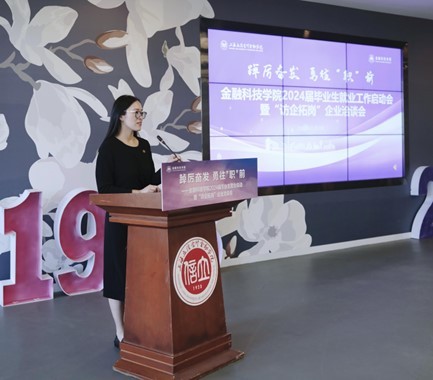 为进一步推动金融科技产业联合学院建设,深化学院与政府、企业的合作,赋能大学生职业素养培育,助力高质量充分就业,11月2日下午,金融科技学院于上川路校区木兰书苑二楼报告厅举办2024届毕业生就业启动暨“访企拓岗”企业洽谈会。校党委常委、副院长温景春,招生与就业处领导,金融科技学院党政班子,上海市崇明区竖新镇人民政府、国泰君安投资管理股份有限公司、中国工商银行上海市分行等10余家合作单位出席,学院师生代表参加。