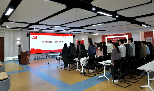 2024年3月27日中午,金融科技学院党总支在上川路校区学生活动中心101(党群服务中心)召开了题为“纳新聚力强党性 奋力一跃创新高”全体党员大会。会议由金融科技学院党总支书记凌慧义主持,无党派人士、副院长吕大永列席,全院师生党员参加。