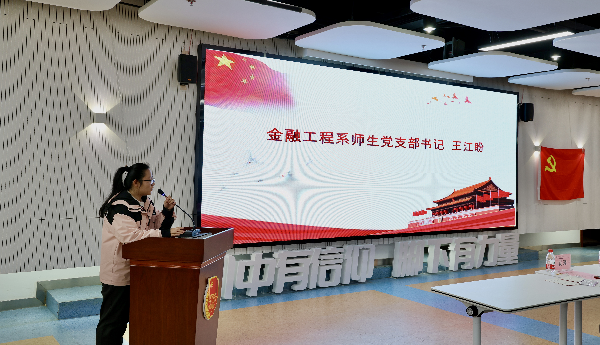 会上,金融科技系师生党支部书记吴慧、金融工程系师生党支部书记王江盼分别作支部工作交流发言。