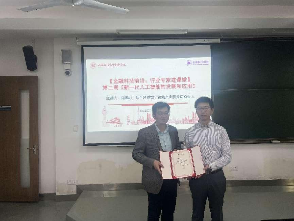 讲座开始前,金融科技学院党总支副书记、院长殷林森教授特向刘彬彬博士颁发上海立信会计金融学院金融科技学院企业导师聘书。在讲座中,刘彬彬博士深入浅出地介绍了新一代人工智能的核心技术和应用案例。他首先阐述了人工智能在推动社会进步和产业升级中的重要作用,随后详细介绍了DAI、规范自主多智能体等前沿技术的原理和应用场景。刘博士还分享了他在科研和产业化项目中的经验和成果,最后刘博士介绍了中国人工智能的发展历程,期待同学们能够加入到人工智能的研究和应用中来,共同推动人工智能技术的发展和应用。