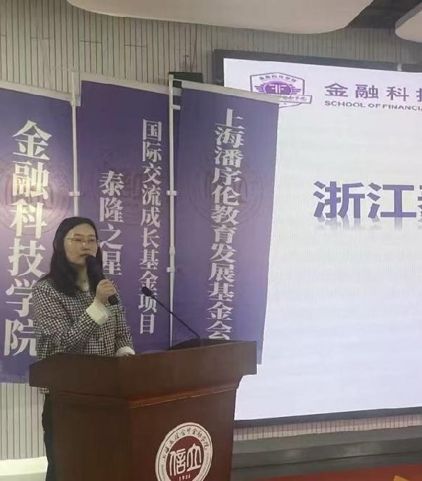 在下午首先进行的项目分享会上,金融科技学院院长、党总支副书记殷林森首先介绍了学校2025年“泰隆之星”项目的运作情况与整体成效。