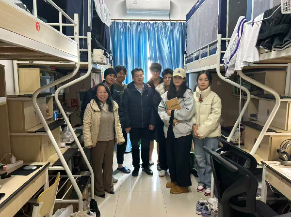 检查过程中,领导班子重点排查了寝室电路安全、大功率电器使用、消防通道畅通等关键隐患点,仔细查看了插座是否老化、被褥摆放是否规范、通风条件是否良好等情况。每到一间寝室,殷林森与新生亲切交流,询问学习生活适应情况,叮嘱同学们提高安全防范意识,远离违规电器,养成良好作息和卫生习惯;陈嵩莉针对冬季防火、用电安全等注意事项进行细致讲解,提醒大家时刻紧绷安全弦。