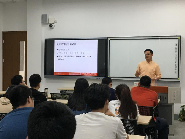 阎志鹏博士首先从专业建设、学生培养等方面简要介绍了新西泽理工学院的概况。接着他向同学们分享了自己的人生经历及留学生涯。阎志鹏毕业于上海交通大学动力机械与工程专业,后被交通大学基础经济硕士专业录取,并于第二年如愿收到美国密西西比大学的录取通知书。留学期间,他与美国密西西比大学的两位教授合作发表学术论文,后经导师推荐成功转学,完成博士课程。对于自己一波三折的求学经历,他说,选择自己所爱、爱自己所选择的,才能在人生的道路上越走越远;选择一位良师,才能学会立足于更高的境地、具备更宽阔的视野;宁为“凤尾”,不为“鸡头”,才是使自己不断前进、拥有破除迷茫的动力;细节决定成败,失败的主观原因在于没有进行充分的前期准备与深入的调查研究。。。。。。他建议同学们多借阅学业学术相关书籍,比如英文原版华尔街日报、人物传记等,用以拓宽自己的知识面,规划好大学的学习生涯。 阎博士的讲座非常接地气,并与同学们展开了互动交流。他娓娓道来,深深启发了同学们的思想,开拓了求知的视野。 附:阎志鹏博士简介 新西泽理工学院Martin Tuchman管理学院金融学终身教授,管理学院副院长。《上海证券报》“谈股阎经”专栏作家;阿里巴巴数据经济研究中心特邀研究员;中欧国际商学院兼职教授;上海交通大学高级金融学院MBA论文导师。阎先生曾先后担任大鹏证券投资银行部上海总部投资经理、纽约千禧年合伙人有限公司的统计套利部研究员、光大期货有限公司投资总监、上海橘颂资产管理有限公司总经理。他曾先后获得美国布兰戴斯大学国际经济与金融博士学位,上海交通大学管理学硕士学位及工程学士学位。闫先生出版过2本中文书籍:《反思华尔街》(2009年,商务印书馆、《疯子、骗子和傻子——第三只眼看投资》(2015年,商务印书馆);并在国内外金融学术期刊发表数十篇文章。 他于2014年10月1日和阿里巴巴研究员合作发布中国Top100城市“游子亲情指数”,并因此获得2015互联网经济研究大会“2014年度十佳优秀研究者”。阎博士还是美国特许金融分析师(CFA)、美国金融风险管理师(FRM),曾拥有美国证券代表,以及股票交易人代表执照(Series 55,Series 7)