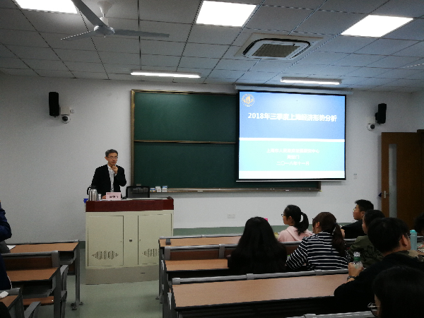 周效门处长给到场的师生带来了一场形象生动的讲座,他从全球经济总体情况、中国经济运行总体情况、上海经济运行总体情况等方面深入浅出地进行了讲解。他指出,当前全球经济总体放缓且挑战增多,全球贸易摩擦紧张局势加剧尤其是中美不断升级的贸易摩擦,将对世界经济的复苏形成挑战。中国经济目前运行整体平稳但“形”稳“势”变,经济增长压力有所加大。