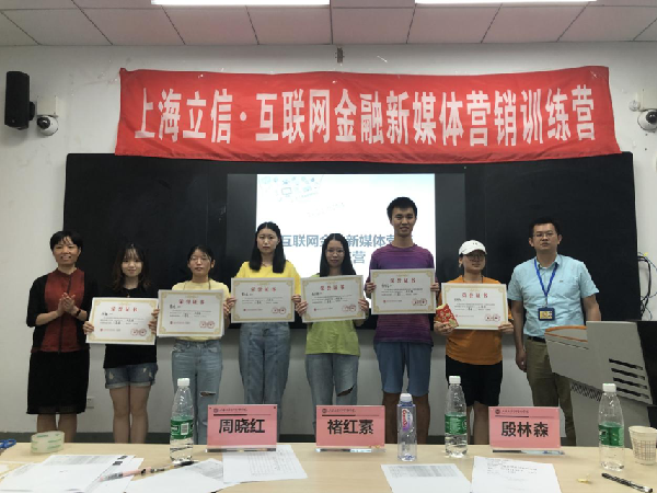 2019年7月5日,上海立信会计金融学院金融科技学院2017级学生为期2周的“互联网金融新媒体营销”训练营课程顺利结营,金融科技学院副院长殷林森、副书记褚红素、副院长杨超和企业代表中国工商银行金融科技部高级经理周颖、贵州宝洞集团总经理周晓红、慧科集团上海区副总经理汤为、教学部金融科技老师刘宗、应琼楼到场参与学生答辩环节,资深讲师王鹏全程指导学生学习课程内容、打磨答辩作品。