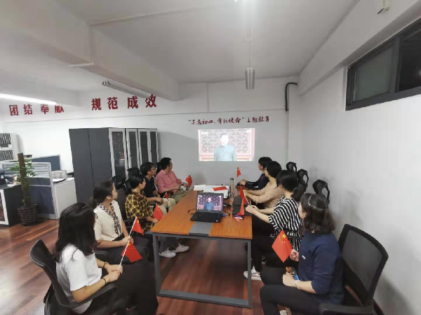 从观看阅兵式现场队列的准备情况,到庆典阅兵式仪式正式开始,五星红旗冉冉升起,再到国家主席习近平讲话,主席检阅三军方队,阅兵分列式,大家挥动着手中的小红旗,目不转睛地盯着直播画面,心潮澎湃,热泪盈眶,充分感受到身为中国人的骄傲和自豪。