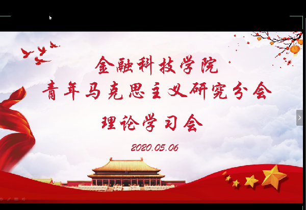 为丰富学生的理论知识,提高青马研成员的党性修养,充分发挥我院学生在疫情防控工作中的先锋模范作用, 5月6日,金融科技学院青年马克思主义研究分会召开了第二期线上理论学习会。本次线上理论学习会由18级入党积极分子黄嘉麒、李金玉婧主讲,由青马研研究分会会长倪嘉雯主持。