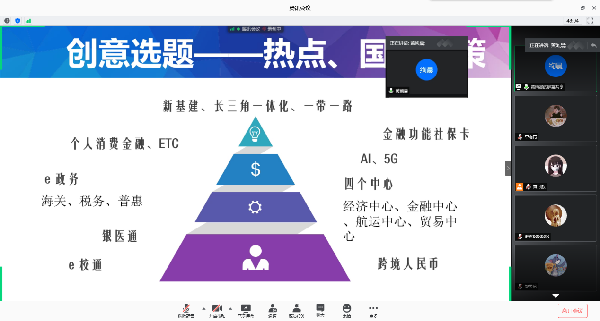 2020年7月28日晚,第二届“工商银行杯”大学生金融科技创意大赛介绍及开题指导专题讲座在腾讯会议召开。工商银行上海市分行金融科技部黄绚晨老师担任主讲人,为本院50余名师生开展了内容丰富、干货满满的线上辅导。