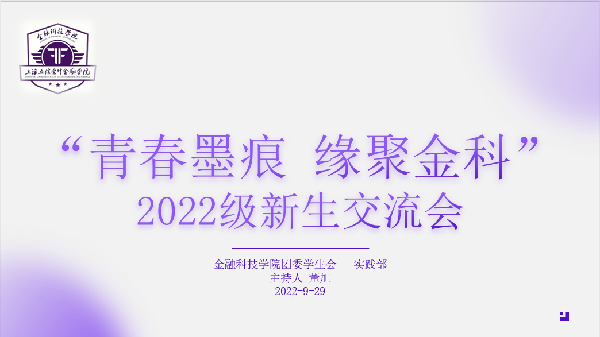 为帮助新生更快适应大学生活,明晰校内各类赛事安排及实习规划,金融科技学院于9月29日在线上组织了“青春墨痕 缘聚金科”新生交流会。会上,学姐们分享了她们的科创实习经验以及大一的学习生活经验。大一全体新生准时参加会议,新生们积极参与提问讨论。