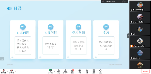 最后是新生提问答疑环节,同学们就实习以及学习上的一些疑难点提出问题。至此,本次交流会在学姐的耐心解答和同学们的热烈讨论中圆满结束!