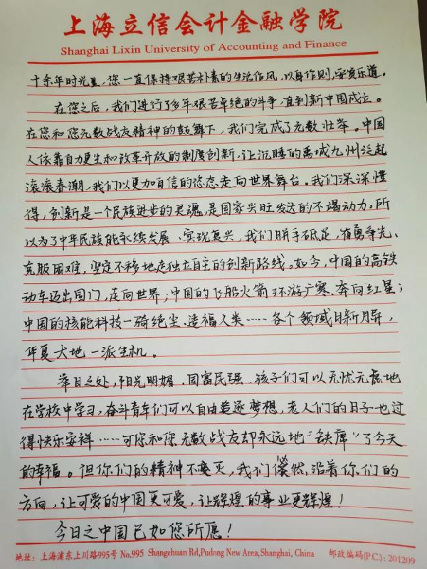 活动三 一等奖书信作品《致陈延年先生的一封信》 韩雪宁 201620219