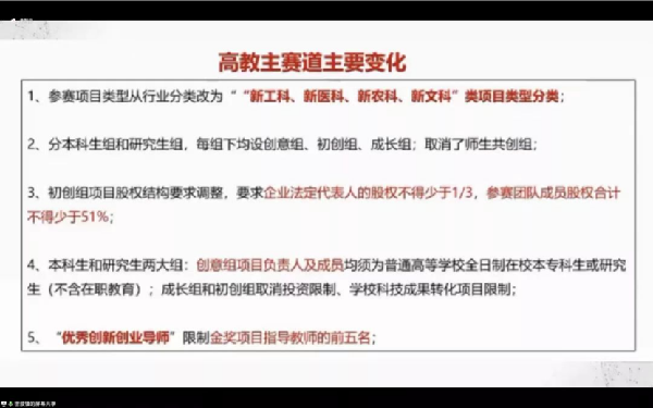 密老师带大家重温了第八届中国国际“互联网+”大学生创新创业大赛,指出第九届“互联网+”大赛将取消师生共创组,并分别对高教主赛道、“青年红色筑梦之旅”赛道和产业赛道的主要变化作出详细的介绍,帮助学生了解不同赛道的调整与创新,同时也让学生们认识到社会群体对大学生创新创业能力和实践能力的重视。