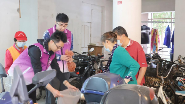 图5 “小菁卫”们和社区志愿者通力合作