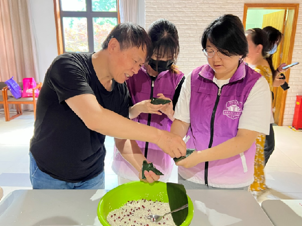 图2 “小菁卫”们在老人们指导下其乐融融地包粽子