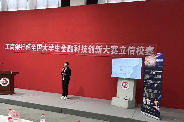 殷林森老师在致辞中回顾了过去几年我校学生在“工行杯”中取得的优异成绩,对工商银行上海市分行在赛事中的大力支持和项目指导表示感谢,同时期待同学们能积极了解金融科技前沿,运用所学,展示风采,服务社会发展。
