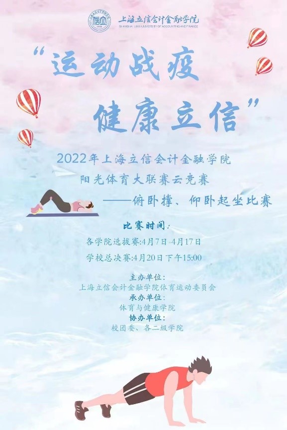 为了推动体育文化建设,加强同学们“疫时”的身体素质,4月17日举行了由上海立信会计金融学院组织,金融科技学院主办的男子俯卧撑、女子仰卧起坐预赛。金科学子踊跃参与,场面火热。