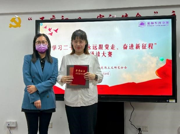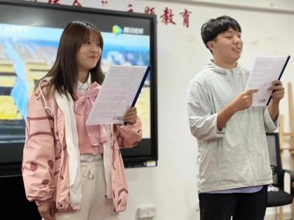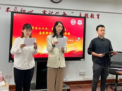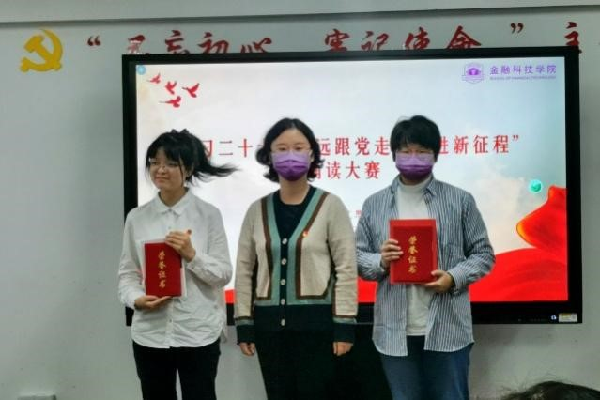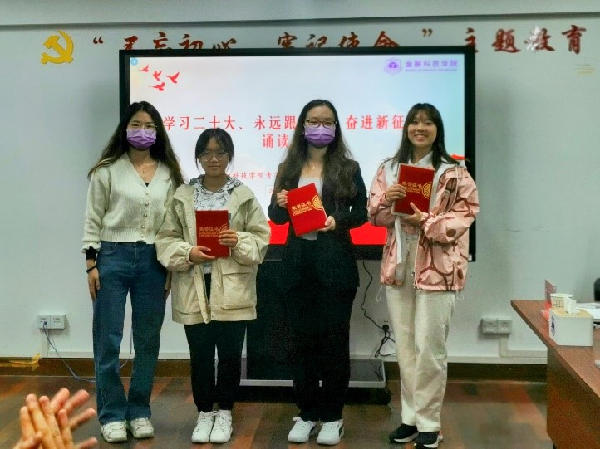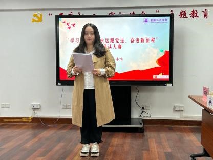 读着自己的坚定信仰和家国情怀,展现了新时代青年大学生爱党爱国、积极向上、奋发有为的精神风貌。大家时而慷慨激昂,时而低声吟诵,用富有感染力的表现博得了一阵阵热烈的掌声。