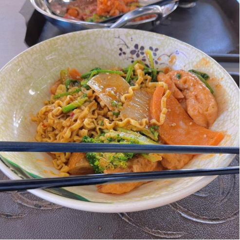 韩式辛拉面,面条劲道爽滑,汤汁浓郁鲜香,可选择的配料丰富。学校里的韩国料理,总让人惊喜满满,让你不出校门也能体会不一样的美味。