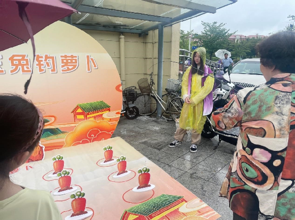活动中,居民通过“中秋套中你”、“玉兔钓萝卜”等小游戏完成活动券集章活动,从而获得金桥社区精心准备的中秋贺礼。“小菁卫”志愿服务团成员负责协助检验居民入场券、维护现场秩序、拍照记录活动现场、引导居民完成游戏等任务。活动过程中,“小菁卫”们分工合作,高效完成工作。活动吸引了众多居民参与,在游园中大家其乐融融,气氛热烈,欢声笑语不断。