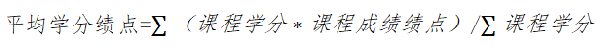 平均学分绩点以学生所修读全部课程的学分计算(包含考试违纪、缺考、不及格、补考和多次重修等情况)保留到小数点后两位,课程平均学分绩点计算公式如下: