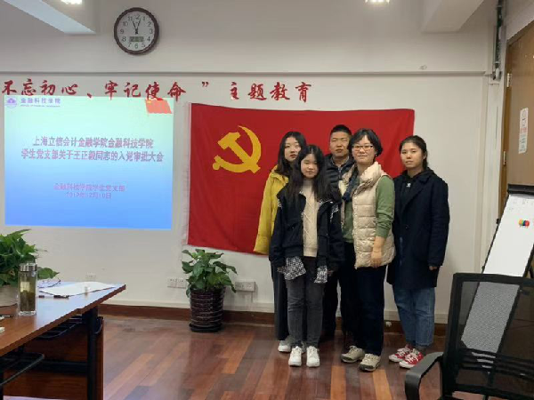 她,在学习中增长才干,在实践中锤炼党性,在服务中培养担当,曾担任金融科技学院团委学生会宣传部副部长。2019年12月10日,经过党组织的考察,王正毅正式成为一名中共预备党员,也是金融科技学院的第一名学生党员。