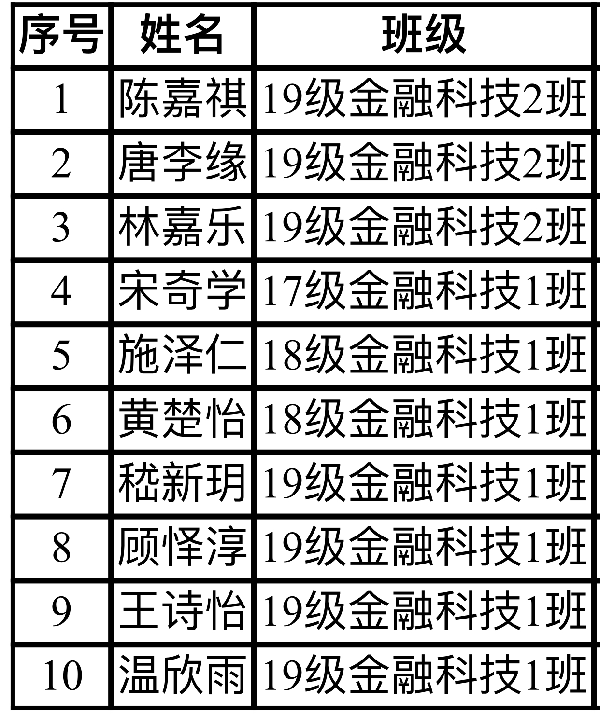 当前“男生俯卧撑、女生仰卧起坐”赛事正火热进行中,学院共计四十余名同学报名参加了院内初赛,经过线上选拔,以下十位同学将代表我们金融科技学院参加校内决赛,希望他们能在决赛中取得好成绩!
